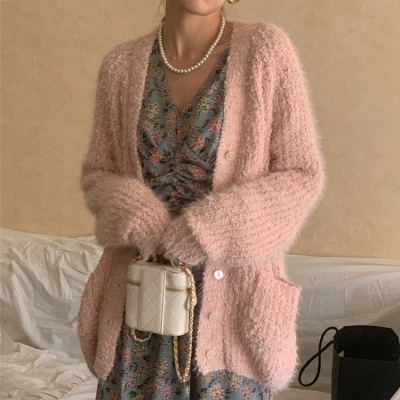 on.[CD507]루즈핏브이넥가디건