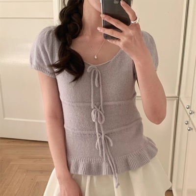 on.[NT643]리본프릴퍼프반팔니트