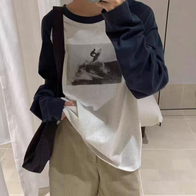 on.[T358]프린팅배색나그랑티셔츠